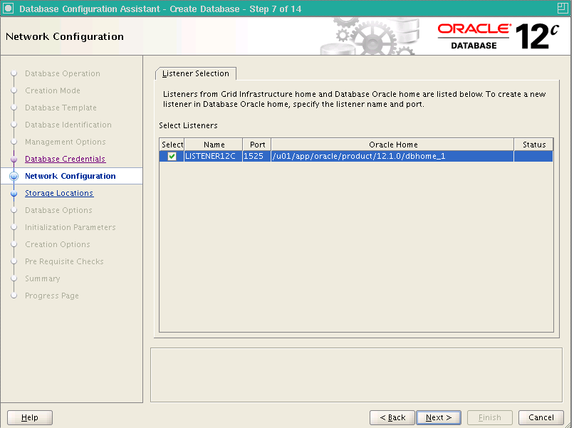 Step 7 : In Network configuration, check the option of Listener 12 c and click on Next Button.