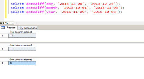 DATEDIFF () Function: This function is use to compare and return the difference between date items such as days ,weeks, minutes.
